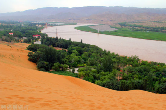 這是我在去沙坡頭前腦海里映像出的對沙漠的唯一想象,仿佛只有大漠、悲涼、蒼茫這樣的詞匯才能描述它男人般的堅強(qiáng)和的胸膛。而我遇見的這個沙坡頭卻是風(fēng)華正茂的少年,綻放著它無處不在的熱情:沙漠蹦極,飛“黃”“騰”達(dá)的飛索橫渡黃河,劃著羊皮筏子漂流黃河,開車越野車在沙漠中急速行駛,從垂直84米高的沙坡上滑下,在騰格里沙漠的邊緣騎著頑皮的駱駝……在沙坡頭,沙漠不再悲涼著它的寂寞,而是沸騰著它的熱情。