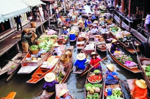 曼谷在異域水城嘆“水上果市”