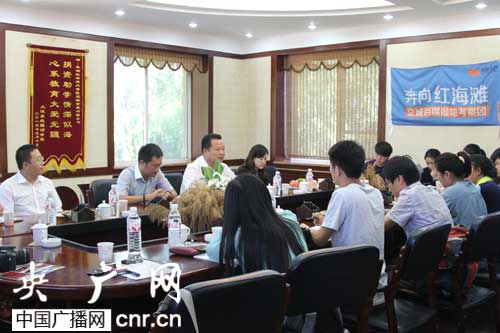 9月15日“奔向紅海灘”——京城百媒濕地考察團(tuán)記者會(huì)現(xiàn)場。(央廣網(wǎng)旅游頻道記者 何微攝)