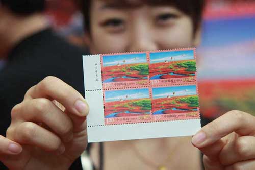 盤錦市有史以來發(fā)行的第一張郵票,《美麗中國——盤錦紅海灘》郵票。
