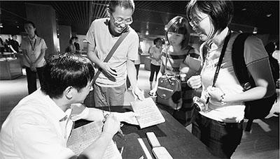 15日,觀眾在國(guó)家典籍博物館了解古代刻板印刷技術(shù)。趙冰攝(新華社發(fā))