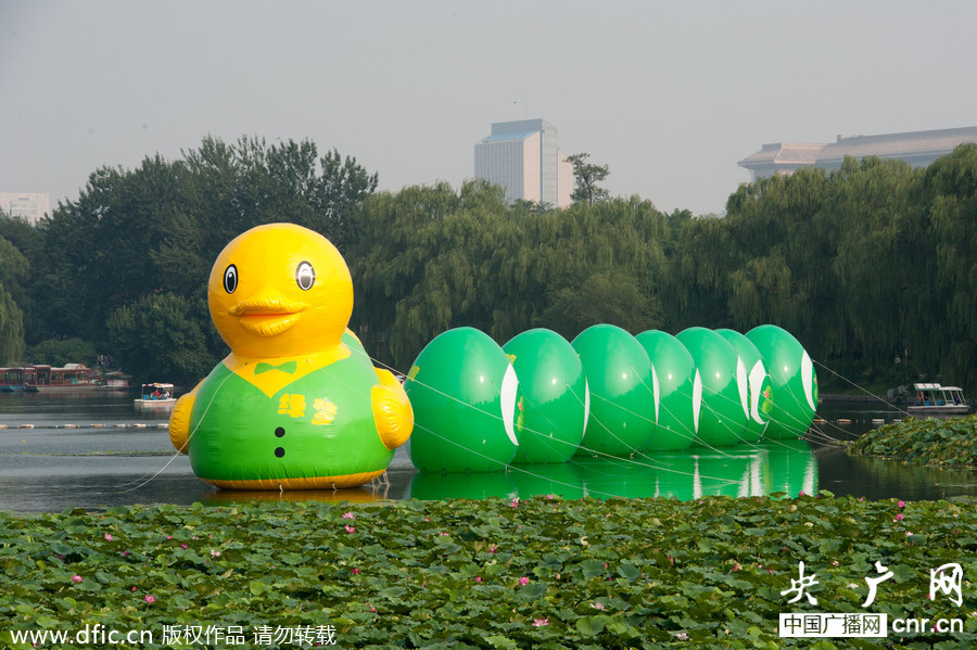 山寨大黃鴨2013年9月6日,玉淵潭公園,下蛋大綠鴨與游客見(jiàn)面。