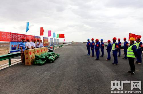 京新高速全長2540公里,2012年9月動工,沿線經過北京——張家口——烏蘭察布——呼和浩特——包頭——臨河——額濟納旗——哈密——吐魯番——烏魯木齊,是國家西部大開發(fā)的重要交通要道。其中,臨河至白疙瘩段全長930公里,位于內蒙古西部巴彥淖爾市和阿拉善盟境內,是內蒙古自治區(qū)歷史上最大的單體公路交通工程,對加快內蒙古融入國家“一帶一路”發(fā)展戰(zhàn)略,破解阿拉善盟“行難”瓶頸,加強區(qū)域間經濟交流合作,拉動阿拉善盟服務業(yè)、旅游業(yè)、加工制造業(yè)等行業(yè)的快速發(fā)展,都具有十分重要的意義。盤明山:“以前阿拉善地區(qū),只有一條通往銀川的高速公路,和東西方向的一條省道,而且道路狀況并不好。京新高速可以直接改變阿拉善的交通狀況,帶動沿線經濟發(fā)展”。