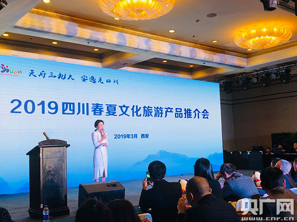 央廣網(wǎng)北京3月28日消息 28日下午,“天府三九大·安逸走四川”2019四川春夏文化旅游產(chǎn)品推介會(huì)在西安金花大酒店舉行,來自陜西省文化和旅游廳、陜西省旅游行業(yè)協(xié)會(huì)、文化旅游企業(yè)和媒體代表百余人共同感受了四川文旅融合后展示出的全新品牌形象和發(fā)展新貌。