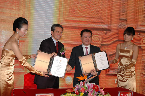 中廣網(wǎng)北京2月3日消息 近日,大連萬(wàn)達(dá)集團(tuán)與美國(guó)希爾頓集團(tuán)在大連正式簽訂酒店管理協(xié)議。萬(wàn)達(dá)集團(tuán)近期在全國(guó)投資興建的五間超五星和六星酒店將引入美國(guó)希爾頓集團(tuán)旗下頂級(jí)品牌進(jìn)行管理。這五家酒店分別為六星級(jí)大連康萊德酒店、超五星級(jí)大連萬(wàn)達(dá)希爾頓酒店、六星級(jí)三亞海棠灣康萊德酒店、超五星級(jí)萬(wàn)達(dá)三亞海棠灣希爾頓逸林酒店、超五星級(jí)南京萬(wàn)達(dá)希爾頓酒店。其中大連康萊德酒店、三亞海棠灣康萊德酒店兩家康萊德這一六星級(jí)酒店品牌,使得萬(wàn)達(dá)成為全球擁有康萊德品牌的最大業(yè)主,代表了目前中國(guó)酒店業(yè)的最高水平。至此,萬(wàn)達(dá)集團(tuán)已與雅高、喜達(dá)屋、希爾頓等多家世界著名酒店管理公司簽訂酒店管理協(xié)議,簽約酒店超過(guò)10間,標(biāo)志著萬(wàn)達(dá)五星酒店建設(shè)進(jìn)入快行道。