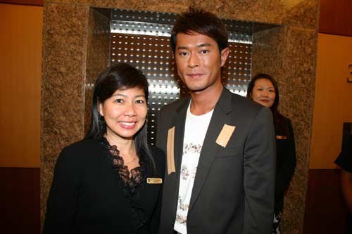 著名演員古天樂與酒店市場總監(jiān)林素芬女士在一起