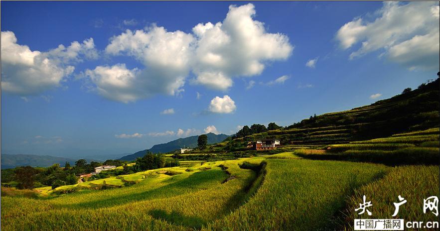 1、看成片金黃的稻穗,追隨著稻香奔跑:稻谷成熟期,秋高氣爽,天空蔚藍(lán)如洗,云彩潔白如棉。陽(yáng)光明媚,秋蟲鳴唱,田頭地角洋溢著色彩斑斕的美,或晨霧輕起,或夕陽(yáng)晚照,那與山水相依粉墻斑駁的村子浮動(dòng)在金黃色的稻浪之上。婺源自駕車行駛在鄉(xiāng)間公路,追隨著稻香奔跑,尋找自己尋找記憶,看陽(yáng)光燦爛,看久違相見的藍(lán)天,聽鄉(xiāng)間的歌謠。