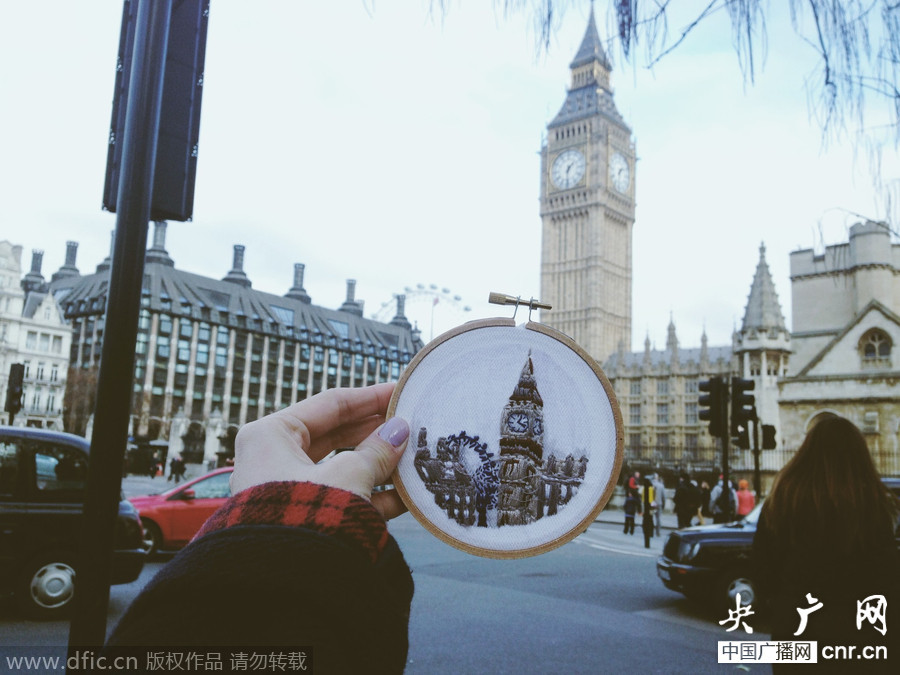 據(jù)了解,特蕾莎從2014年開始用刺繡紀(jì)念旅游。在她看來,拍照留念實在是太普通了,于是她萌生了用刺繡定格旅行的想法。特蕾莎表示,每次完成一幅刺繡不僅加深了自己對當(dāng)?shù)氐挠洃,還會帶來巨大的滿足感,而這種感覺是拍照無法比擬的。