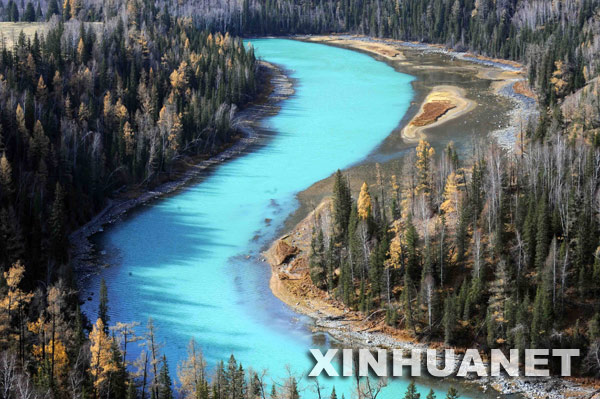 這是新疆喀納斯旅游風(fēng)景區(qū)內(nèi)的喀納斯湖美景(10月13日攝)。新華社記者 沙達(dá)提 攝
