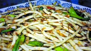 盡管折耳根的根、莖、葉均可入菜,清燉、爆炒、滾湯、腌漬等各不相同,但客家地區(qū)最多人制作折耳根的方法就是涼拌折耳根。當一盤散發(fā)著異香的涼拌魚腥草端上桌來,第一次與之相會的人或許會被其“霸氣”的香味給“震住”。但只要你鼓起勇氣挾起一小筷勇敢地嚼上幾口,你就會發(fā)現(xiàn)起初的魚腥味慢慢轉變成了一種奇特的植物清香,口感微甜、多汁、脆嫩,十分爽口開胃。
