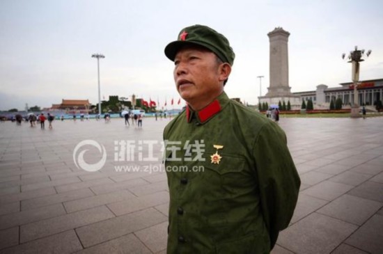 云南籍退伍老兵盧漢文曾經(jīng)參加過老山戰(zhàn)役,他穿上老軍裝佩戴對越自衛(wèi)反擊戰(zhàn)紀念章在天安門廣場留影,他說感覺特別自豪。