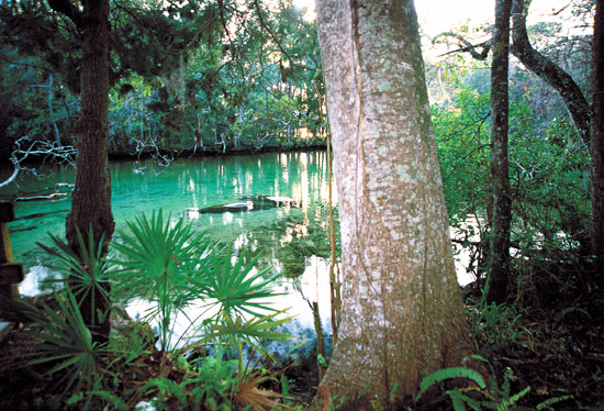 佛羅里達(dá)環(huán)境最優(yōu)美的公園非龐塞德萊昂泉州立公園莫屬。龐塞德萊昂這個(gè)名字來(lái)源于1513年首次登陸佛羅里達(dá)州的西班牙殖民者。龐塞德萊昂為了尋找傳說(shuō)中的不老泉,橫渡大西洋尋找夢(mèng)中的泉水。這里的泉水日流量可達(dá)1400萬(wàn)加侖。主泉有兩條地下水流組成,這里流出的水常年保持20度,正可謂冬暖夏涼。雖然龐塞德萊昂并未遠(yuǎn)足到佛羅里達(dá)西北部,但這里的泉水卻有著悠久的歷史。在第一批歐洲人抵達(dá)佛羅里達(dá)之前,美洲原住民經(jīng)常涉足這片水域。早期的探險(xiǎn)家們發(fā)現(xiàn)Chatot和Chisca (Yuchi)印第安人就在這片區(qū)域生活和狩獵。當(dāng)殖民者遷入這片區(qū)域的時(shí)候,西班牙于1821年將佛羅里達(dá)轉(zhuǎn)讓給了美國(guó),龐塞德萊昂泉迅速引起了人們的注意。清澈的泉水吸引了大批游人前來(lái)釣魚、飲水和消暑。