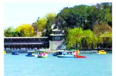 昨天時逢清明節(jié)小長假,北海公園內(nèi)游人挺多。整整一上午,太液池水面風(fēng)平浪靜。游船碼頭售票處窗口外,貼著今日溫度、風(fēng)向、風(fēng)力等信息,一切毫無異常。下午1點(diǎn)45分,水面上突然來了一陣“怪風(fēng)”,讓不少游客大驚失色。