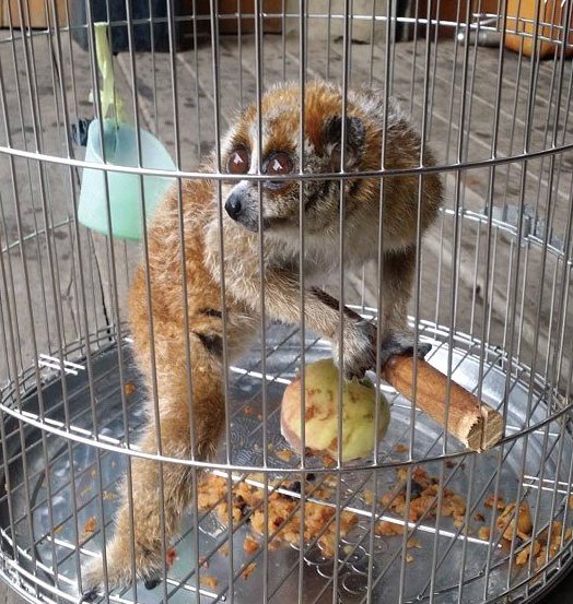 濕地公園撿到一只小蜂猴 萌萌噠的家伙對(duì)人又抓又咬