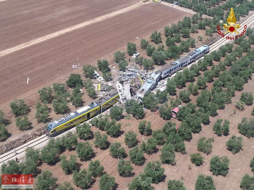 慘烈!意大利發(fā)生火車相撞事故 車廂完全撞碎(圖)