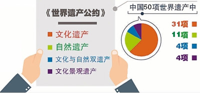 加入《公約》30多年來,中國積極開展遺產(chǎn)申報和保護,已成為世界遺產(chǎn)數(shù)量增長最快的國家之一。從2003年起,中國連續(xù)14年每年都有項目成功入選世界遺產(chǎn)名錄。隨著今年又有2個項目申遺成功,中國的世界遺產(chǎn)數(shù)量增至50項,其中,世界文化遺產(chǎn)35項(其中4項為文化景觀遺產(chǎn)),世界自然遺產(chǎn)11項,文化與自然雙重遺產(chǎn)4項。