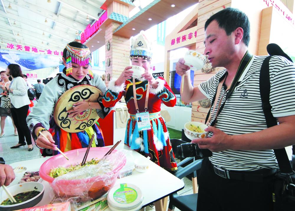 圖二:赫哲傳統(tǒng)飲食文化吸引了游客品嘗。