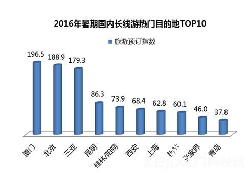 同程旅游暑期出游預(yù)訂數(shù)據(jù)顯示,廈門、北京、三亞、昆明、桂林/陽朔、西安、上海、桂林、張家界、青島是今年暑期最熱門的十個(gè)目的地,與往年的情況基本一致。7月份作為暑期旅游的“上半場”,熱門目的地主要集中在海濱城市等親水、避暑資源豐富的地區(qū),8月份作為“下半場”,秋游主題線路迅速升溫,內(nèi)蒙古、黑龍江、成都、九寨溝等出游人數(shù)明顯上升。