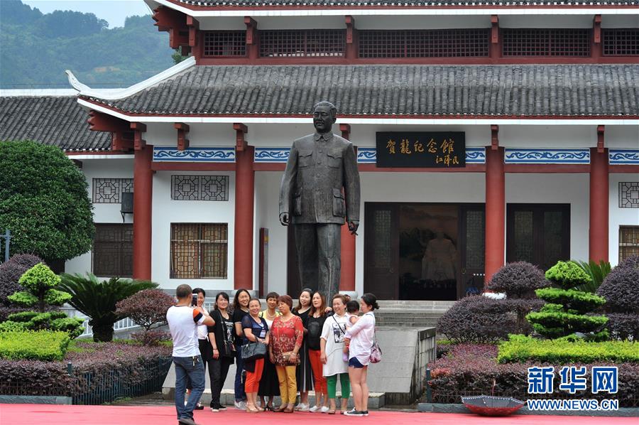 9月6日,游客在湖南桑植縣賀龍紀(jì)念館前留影。今年是紅軍長征勝利80周年,位于湖南省張家界市桑植縣境內(nèi)的賀龍紀(jì)念館、中國工農(nóng)紅軍第二方面軍長征出發(fā)地紀(jì)念館等紅色旅游景點吸引了大批游客前來參觀游覽。新華社記者龍弘濤攝