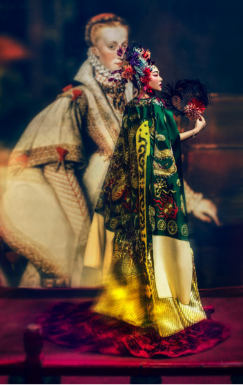 為了吻合鐘美人西方背景、混血血統(tǒng)的獨特氣質(zhì),亮相文化匠心獨具的打造出中西混搭的視覺效果——瞧,這款京劇有點兒酷!