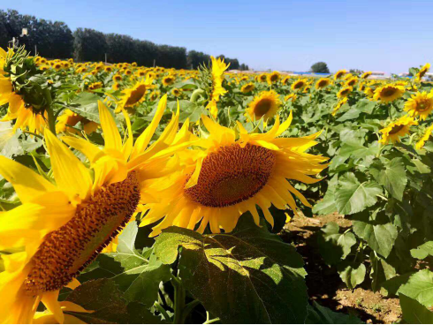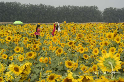 在離市區(qū)最近的地方,在南五環(huán)飲鹿池橋邊,紅星集體農(nóng)莊盛大向日葵花節(jié)為首都市民呈現(xiàn)別樣金秋!600畝向日葵花海,金波蕩漾,富麗堂皇;十幾個(gè)品種的花朵,交互輝映,傲然綻放。這里有觀賞區(qū)、休閑燒烤區(qū)、兒童娛樂區(qū)、采摘區(qū),豐富的內(nèi)容滿足各種年齡段的人群體驗(yàn)觀賞。