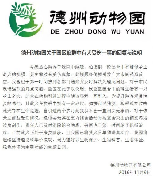 德州動(dòng)物園方面對(duì)此事進(jìn)行了說(shuō)明和答復(fù)。