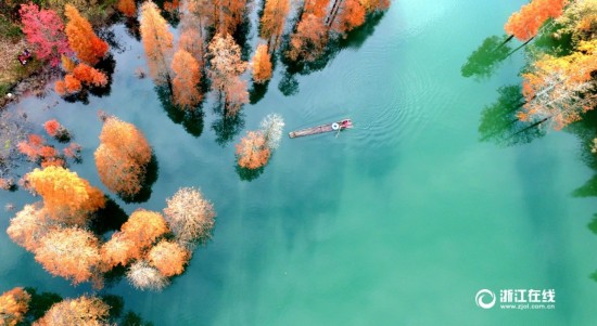 12月11日,仙居縣谷坦水庫邊緣的水杉黃紅相間,在庫水映襯下,波光粼粼,美不勝收,猶如江南喀納斯。仙居縣開展“五水共治”活動(dòng)以來,對(duì)山塘水庫、河道等進(jìn)行了系統(tǒng)治理,水環(huán)境有了大提升。王華斌 攝