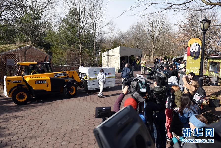 2月21日,在美國華盛頓的國家動物園,工作人員運送裝有大熊貓“寶寶”的箱子。當日,華盛頓國家動物園的大熊貓“寶寶”起程回國。它被放在一個特制的箱子中,搭乘聯(lián)邦快遞公司的波音777專機飛往中國成都。陪“寶寶”同行的有華盛頓國家動物園的一名飼養(yǎng)員和一名獸醫(yī),以及20多公斤的竹子、約1公斤的蘋果等食物!皩殞殹2013年8月23日在華盛頓國家動物園出生,它的父母“添添”和“美香”2000年從中國來到華盛頓國家動物園。新華社記者殷博古攝