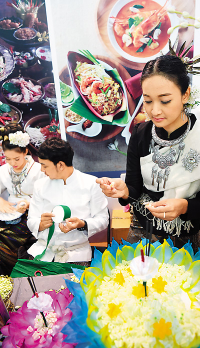 泰國(guó)在2016中國(guó)—東盟旅游博覽會(huì)旅游展上展示泰國(guó)傳統(tǒng)美食制作。