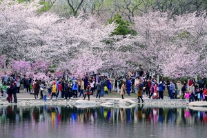 玉淵潭上千株早櫻迎來最佳觀賞期。周末共有12萬游客盡興賞櫻。常年在地鐵公交站臺值守的首都文明引導首次走入公園,維持游園秩序,勸阻不文明賞花行為,受到市民歡迎。