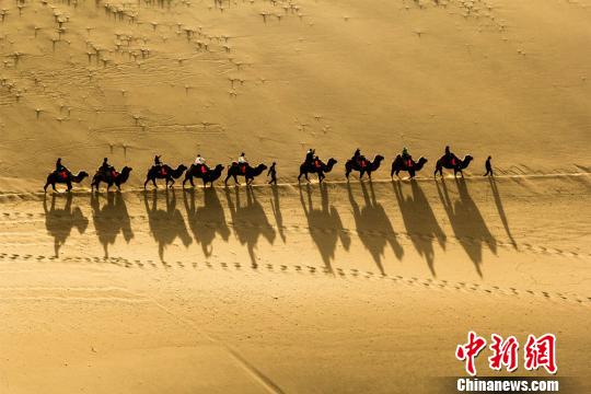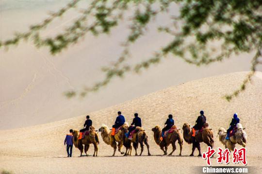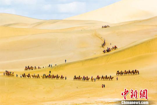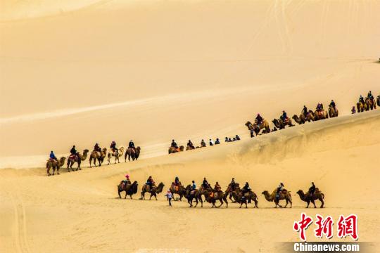 敦煌鳴沙山月牙泉景區(qū)的觀光駝隊(duì)!⊥醣筱y 攝