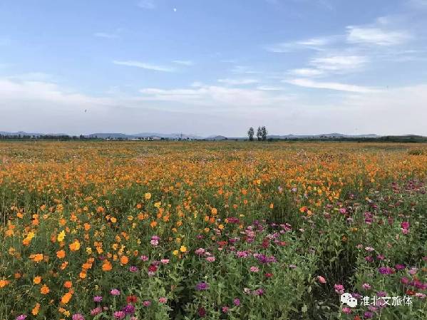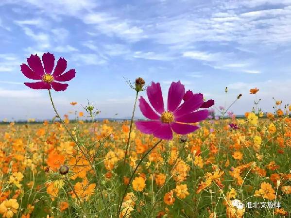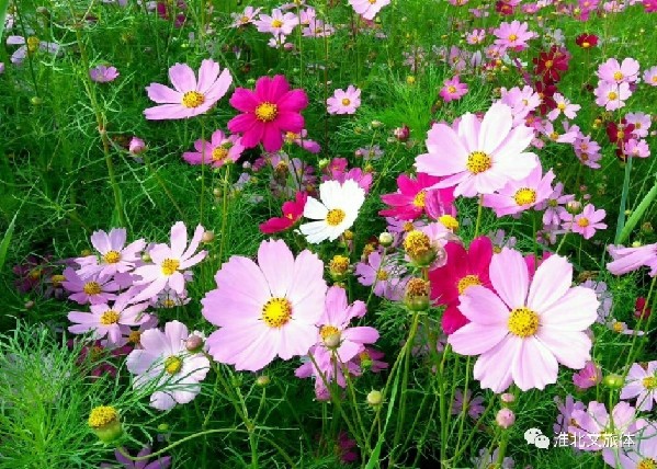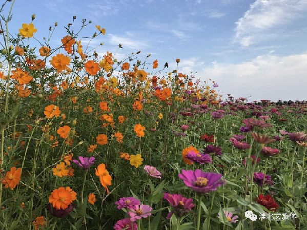 五顏六色的格桑花和金色的向日葵