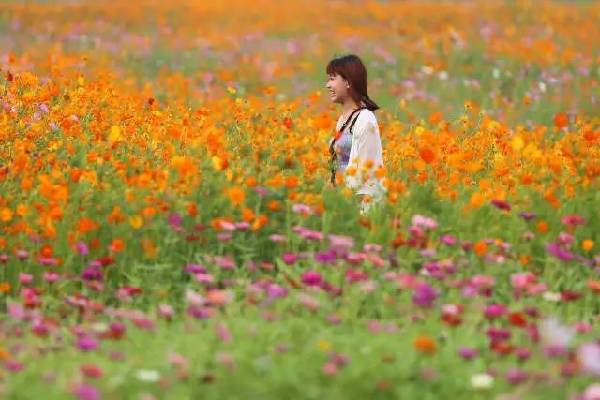 與各式各樣的花朵合影