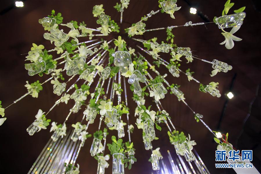 這是在寧夏銀川市中國花卉博覽園綜合館中的陜西花卉展館拍攝的吊燈式白蘭(9月1日攝)。 9月1日,第九屆中國花卉博覽會在寧夏銀川市拉開序幕。本屆花博會除了展示全國各地奇花異草之外,還將重點展示我國和“一帶一路”沿線國家花卉事業(yè)發(fā)展成就,交流花卉領(lǐng)域的新技術(shù)、新產(chǎn)品等,促進花卉產(chǎn)業(yè)化、貿(mào)易國際化。新華社記者 隋先凱 攝 -