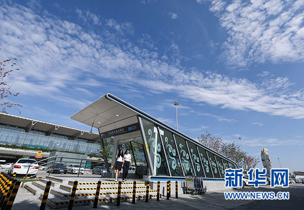 9月6日,兩名乘客從成都地鐵10號線雙流機(jī)場T1航站樓站走出。當(dāng)日,成都地鐵10號線一期正式開通試運(yùn)營。10號線一期工程全長約10.9公里,均為地下線,共設(shè)車站6座。這是成都地鐵首條機(jī)場專線。新華社記者 江宏景攝