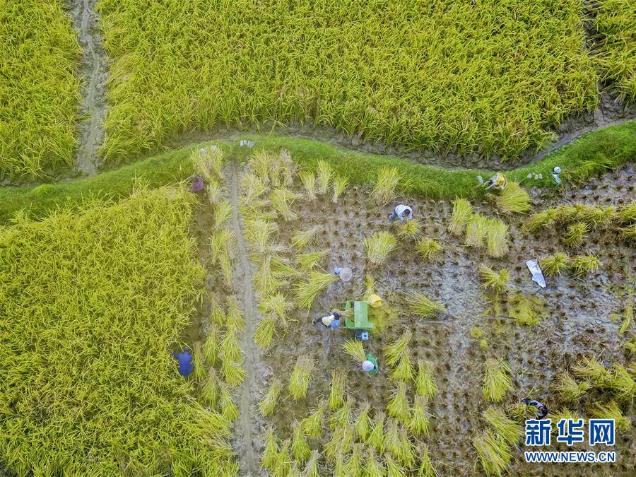 •   9月10日,貴州省遵義市余慶縣白泥鎮(zhèn)的農(nóng)民在收割水稻。   秋高氣爽,位于黔北的遵義市余慶縣的水稻陸續(xù)成熟,豐收在望。   新華社發(fā)(賀春雨 攝)