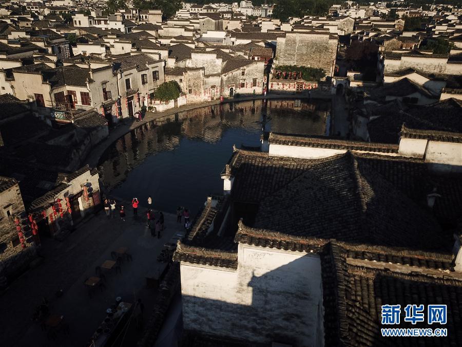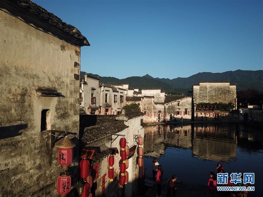•   9月15日清晨,游客在安徽黟縣宏村風(fēng)景區(qū)月沼景點(diǎn)參觀。