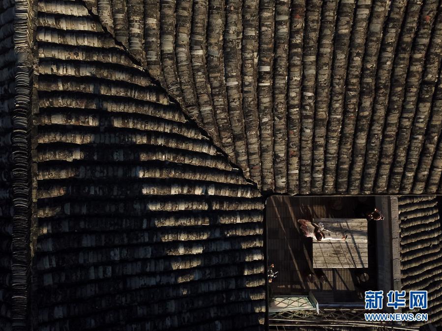 •   9月15日,游客在安徽黟縣宏村風(fēng)景區(qū)月沼景點(diǎn)一處徽派建筑里拍照。