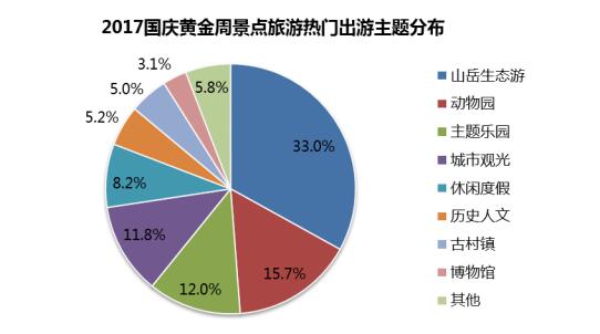 出游主題方面,山岳生態(tài)游、動物園、主題樂園、城市觀光等是最熱門的景點旅游出游主題。與往年相比,休閑度假類的度假區(qū)、溫泉度假村及農(nóng)家樂等類型的游覽區(qū)或景點的需求量有所上升,整體客流量占了8.2%的比例。