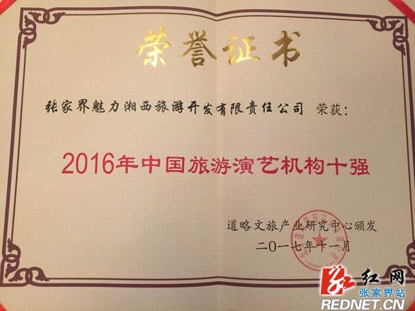 “中國旅游演藝機(jī)構(gòu)十強(qiáng)”由中國演藝市場權(quán)威調(diào)查機(jī)構(gòu)“道略文旅游產(chǎn)業(yè)研究中心”評選,與張家界魅力湘西公司一同上榜的還有宋城演藝發(fā)展股份有限公司、云南楊麗萍文化傳播有限公司等9家演藝企業(yè)。張家界魅力湘西公司2016年度接待游客超過110萬人次,并在年底啟動軟硬件設(shè)施的提質(zhì)升級,由馮小剛擔(dān)任總導(dǎo)演進(jìn)行全面改版,在業(yè)界形成了較強(qiáng)的品牌美譽(yù)度和影響力。