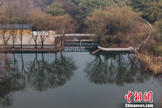 航拍江蘇“九寨溝”盱眙鐵山寺冬日迷人風(fēng)采,公園地形西高東低、山體絕對(duì)高程在200米以下。泱波 攝 這里透露出靜謐感。泱波 攝 多條山溪匯集成湖。