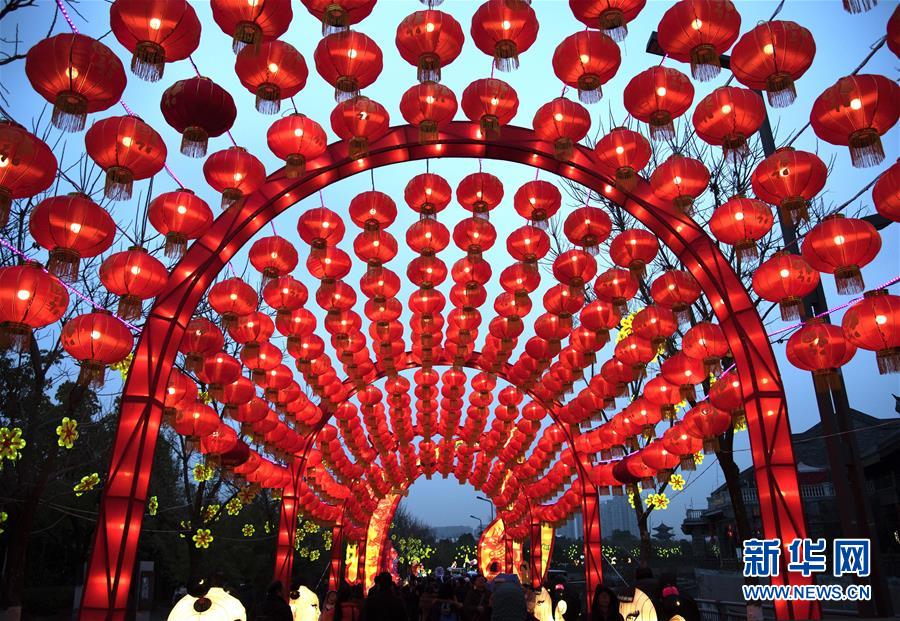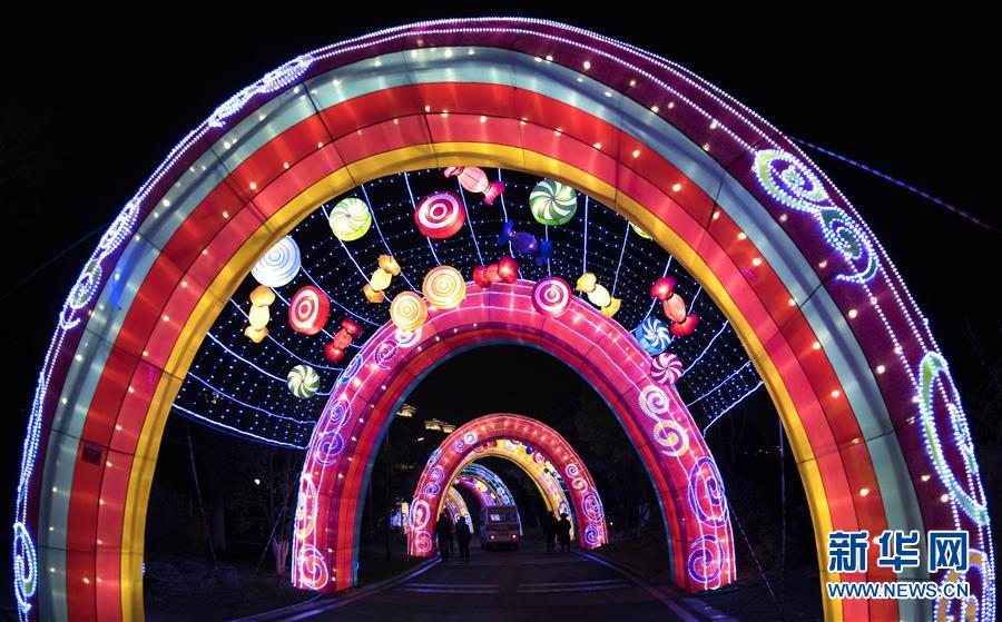 1月1日,在武漢園博園第三屆花燈會(huì)上,市民在大紅燈籠組成的長(zhǎng)廊中穿行。當(dāng)日,武漢園博園第三屆花燈會(huì)開(kāi)幕。本屆花燈會(huì)共設(shè)置8大版塊118組彩燈,吸引了許多市民前來(lái)觀賞。 新華社記者 程敏 攝 -