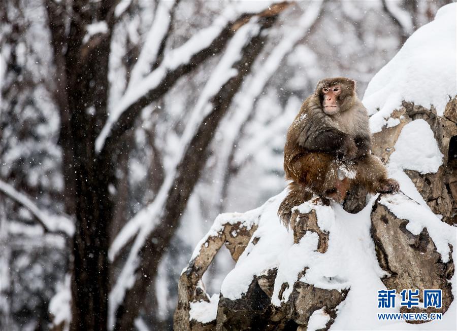 1月4日,安徽省淮北市相山公園的猴子獨(dú)立雪中。 當(dāng)日,淮北迎來(lái)一場(chǎng)強(qiáng)降雪。新華社發(fā)(王文 攝)