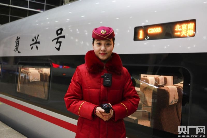 2018年2月1日春運首日, 北京南站,C2003次“復(fù)興號”列車,列車長以飽滿的精神狀態(tài)準備出發(fā)。(央廣網(wǎng)記者 王永康攝)