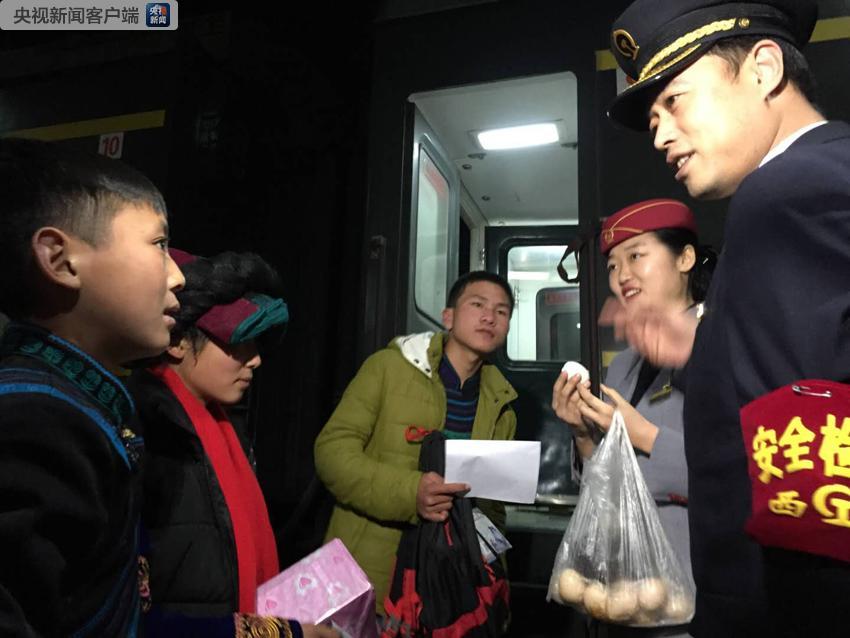 說起他們的緣分,這背后還有一個感人的故事。由中國鐵路西安局集團公司西安客運段擔當值乘的西安至昆明K165次列車在2010年“8.19”“抗洪搶險 勇救旅客”事件中,在兩名彝族旅客的幫助下創(chuàng)造了無一名旅客傷亡的奇跡,被原鐵道部授予“英雄列車”稱號。為了回饋彝族同胞的幫助,自2012年開始,K165次班組職工先后同大涼山瓦爾小學、民勝小學、喜德中學等學校開展共建;同時班組職工分三批同8名彝族孤兒簽訂了資助協(xié)議,幫助他們完成義務教育。姐姐呷呷,弟弟里呷和殘疾學生吉古攀加就是其中三名受資助的彝族孩子,他們相約在過年前,去西昌車站見資助他們的趙叔叔和谷阿姨,向他們匯報一學期的成績并送去新年禮物。