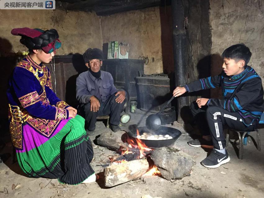 為了這次相聚,里呷早早就起床,在屋角的土豆堆里精挑細選,土豆是自家地里刨出來的,是里呷一家的日常主食。里呷記得去年家訪時列車的叔叔阿姨說起這里的土豆軟糯香甜口感好,就想著烤些土豆讓叔叔阿姨們嘗嘗。他很認真地挑選著,形狀不規(guī)則的不要,表皮不光滑的不要,不漂亮的不要,有黑斑的不要,要長綠芽的不要……再三甄選對比,細致清洗。姐姐呷呷在火塘里上生起了火,架上鐵鍋,正在咕嘟嘟的煮著雞蛋,白色的雞蛋在鍋里翻滾。
