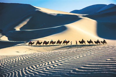 2018年農(nóng)歷春節(jié),絲綢之路歷史文化名城甘肅敦煌迎來(lái)了節(jié)日旅游高峰。數(shù)萬(wàn)名來(lái)自全國(guó)各地的游客,紛紛前來(lái)敦煌著名的鳴沙山月牙泉景區(qū),騎上駱駝,暢游敦煌鳴沙山,體驗(yàn)絲路風(fēng)情、敦煌民俗,在大漠駝背上度過(guò)一個(gè)快樂(lè)的文化年、旅游年。