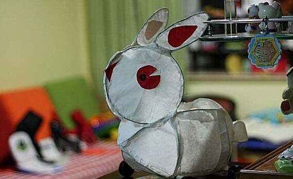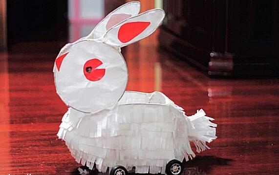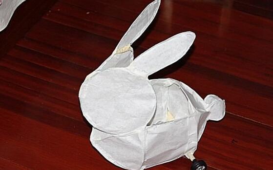 8.把孩子的廢舊玩具車(chē)的輪子拆下來(lái),制作出可以拖動(dòng)兔子燈籠的底座,并安裝上蠟燭。