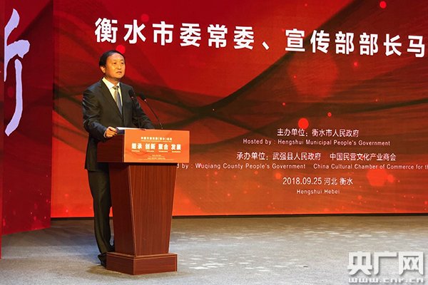 央廣網(wǎng)北京9月26日消息(記者胡瑩瑩)近年來,河北省衡水市將發(fā)展文旅產(chǎn)業(yè)作為實施鄉(xiāng)村振興戰(zhàn)略、推進產(chǎn)業(yè)轉(zhuǎn)型升級的重要載體,積極構(gòu)建全域旅游空間格局。2018年9月25日,由衡水市人民政府主辦,武強縣人民政府、中國民營文化產(chǎn)業(yè)商會承辦的中國文旅發(fā)展(衡水)論壇成功舉辦。本次活動的主題是“繼承·創(chuàng)新·聚合·發(fā)展”,聚焦文化旅游產(chǎn)業(yè)及文化藝術(shù)的創(chuàng)新發(fā)展。