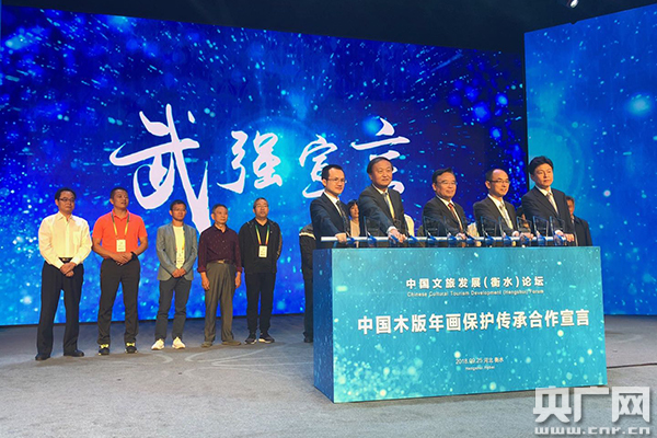 此外,本次活動特別設置“武強宣言”環(huán)節(jié)。武強年畫博物館館長王玉鵬作為代表宣讀《中國木版年畫保護傳承合作宣言》。來自天津楊柳青、江蘇蘇州桃花塢、山東濰坊、四川綿竹、河南朱仙鎮(zhèn)、河北武強等地的年畫代表及部分年畫專家,共同完成宣言啟動儀式,立志將中國木版年畫更好地保護傳承下去,讓中國年畫具有更大的世界影響力。在隨后的“藝術(shù)文化創(chuàng)新論壇”環(huán)節(jié),幾位嘉賓圍繞中國藝術(shù)文化發(fā)展現(xiàn)狀、科技對文化藝術(shù)發(fā)展帶來的影響、如何多領域結(jié)合進行創(chuàng)新發(fā)展等議題,進行交流分享。